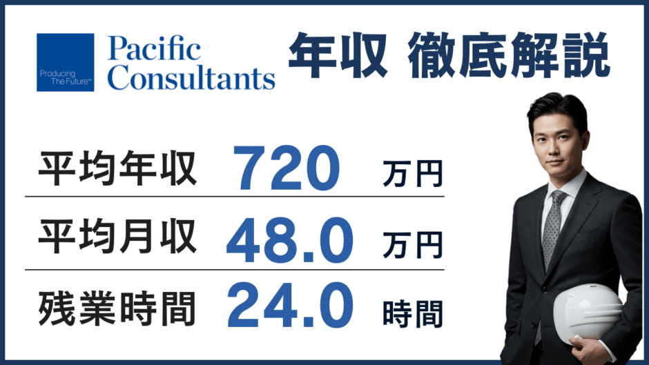 パシフィックコンサルタンツの新卒1年目の年収は、学部卒で450〜480万円、院卒で480〜510万円が目安です。