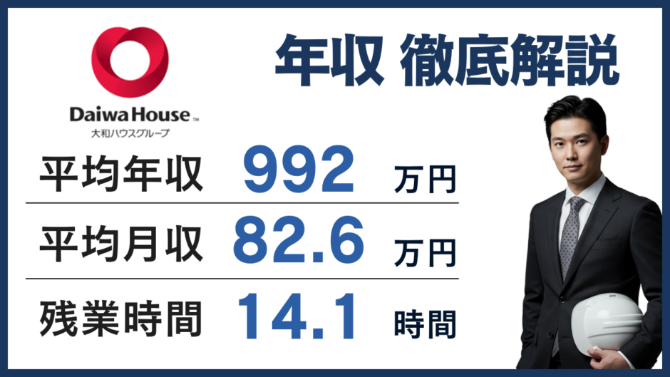 大和ハウス工業の平均年収992万円は、大手ハウスメーカーの中でも最上位に位置します。中堅ハウスメーカーと比較すると200万〜400万円、地場工務店とは500万円以上の差がつく金額です。
