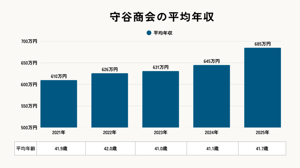守谷商会の平均年収は685万円となっています。【参照:有価証券報告書】