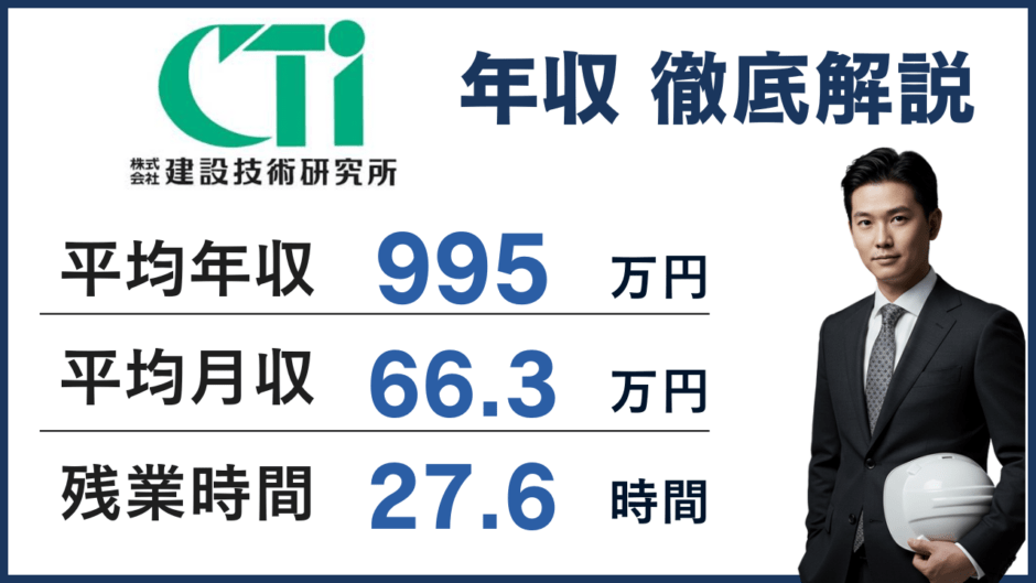 建設技術研究所の平均年収は995万円(2024年12月期)です。過去5年間で約139万円増加しており、2024年は過去最高を更新しました。平均年齢は42.4歳で安定しています。