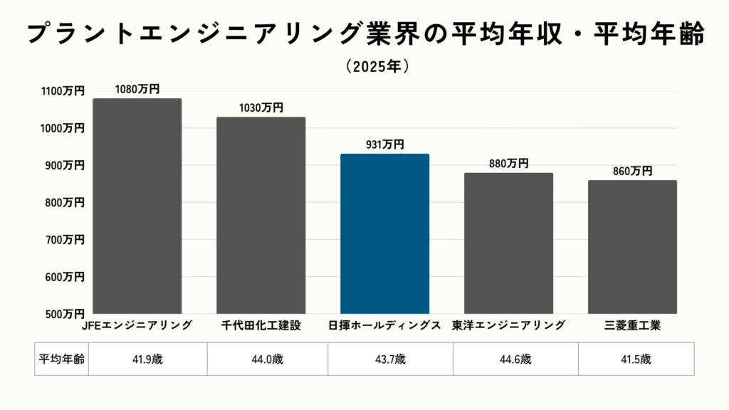| 3位 | 日揮ホールディングス | 931万円 | 43.7歳 |