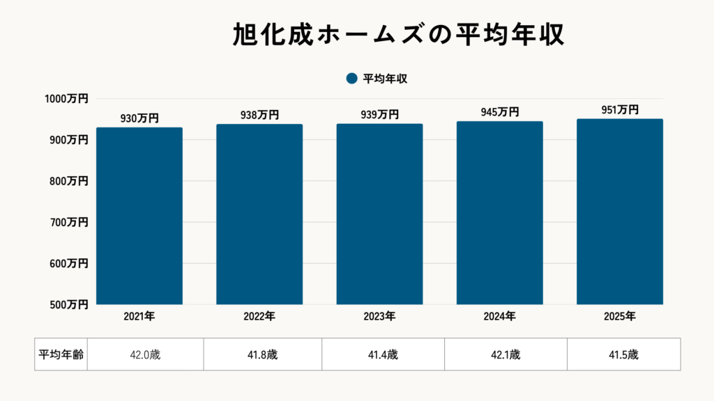 また、平均年齢は41.5歳と5社の中でも比較的低い水準で、これは年次を重ねるごとに着実に昇給し、ベテラン層まで安定して高収入を得られる環境であることを示しています。