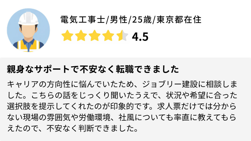 - 【結論】電気工事士に強い転職エージェントならジョブリー建設がおすすめ!