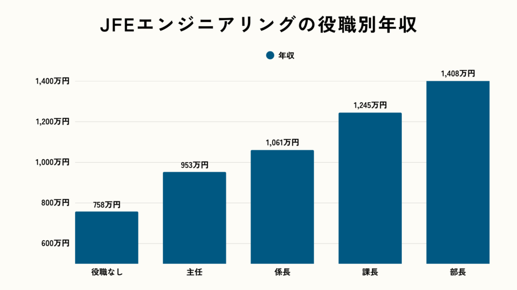 | 役職なし | 700〜800万円 | 〜8年目 | 若手〜中堅。基本給+賞与+残業代で着実に上昇 |