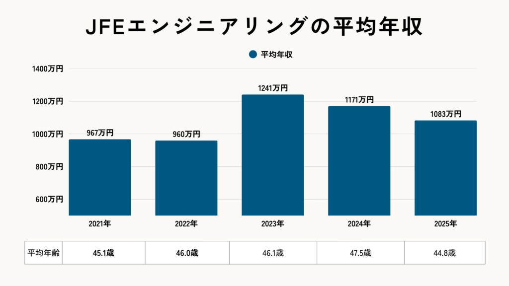 | 1位 | JFEエンジニアリング | 1,083万円 | 44.8歳 |