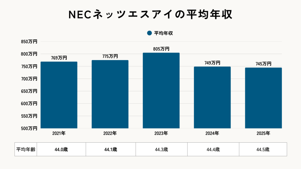 | 4位 | NECネッツエスアイ | 745万円 | 44.5歳 |