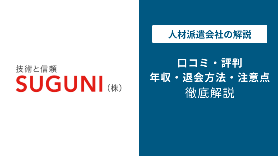 SUGUNI株式会社は、建設業界に特化した技術者派遣・人材紹介会社です。この記事では、SUGUNI株式会社の良い評判・悪い評判を包み隠さず徹底解説します。